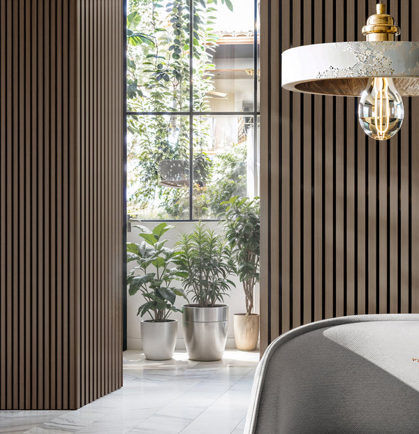 7 mm fekete PE filcrétegen installált, 12 mm vastag, 3 oldalon laminált P2 MDF lamellák. 1 db panel: 1,62 m². Legyen szó nyugodt otthoni környezetről vagy professzionális munkahelyi térről – a panelek ideálisak nappalikban, hálókban, irodákban, tárgyalókban, de stílusos megoldást nyújtanak éttermekben, kávézókban, stúdiókban, moziszobákban és konferenciatermekben is.